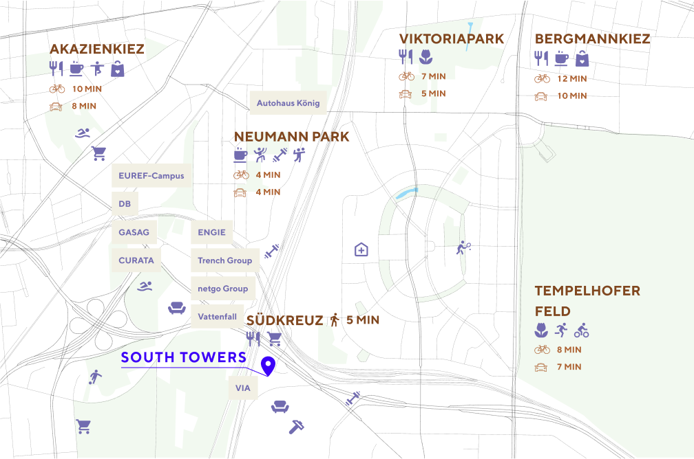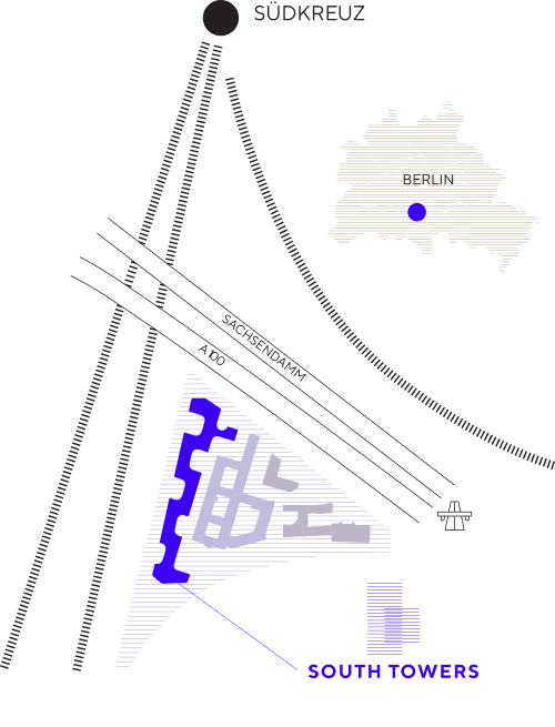 Die intelligente Kombination aus innovativer Architektur, bester Lage und flexiblem Nutzungskonzept machen die South Towers am Berliner Südkreuz zu den CONNECTED FUTURE SPACES.